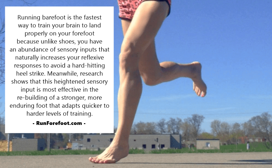 Humans evolved to run barefoot, therefore we needed to evolve optimal mechanical defenses against injurious impacts in the absence of underfoot cushioning! This is why we evolved to land with a forefoot strike NOT a heel strike! Heel striking when running is unnatural and will get you no where but hurt, and hating running!